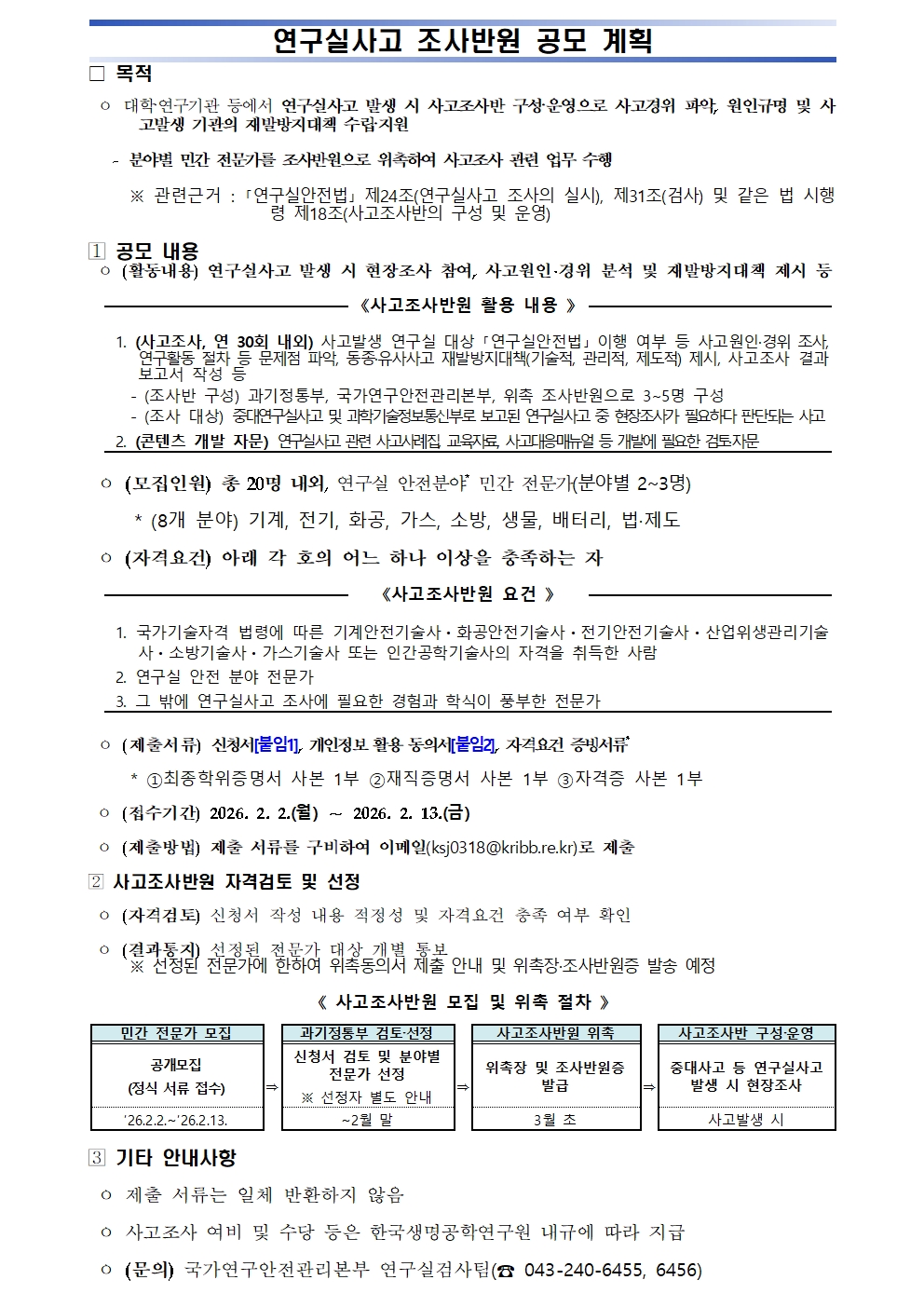 [국가연구안전관리본부] 연구실사고 조사반원 공모 계획